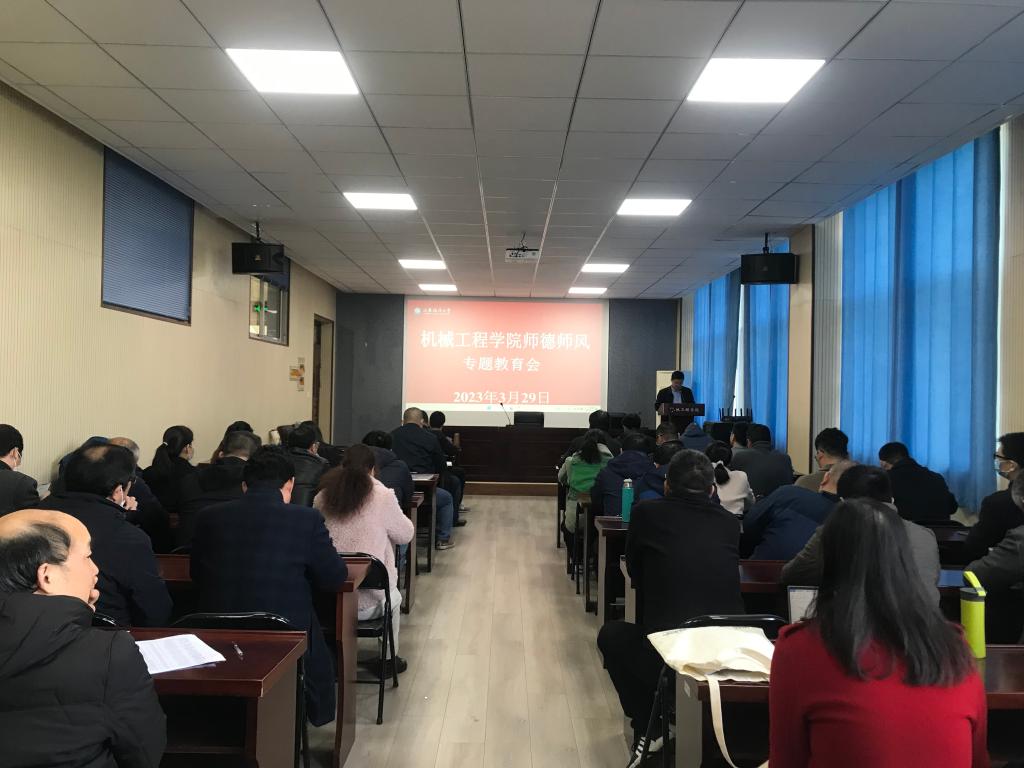 3月29日下午,在机械楼210会议室,机械工程学院召开2023年度师德师风专题教育大会。学院党委书记王秋玉主持,全体教职工参加。